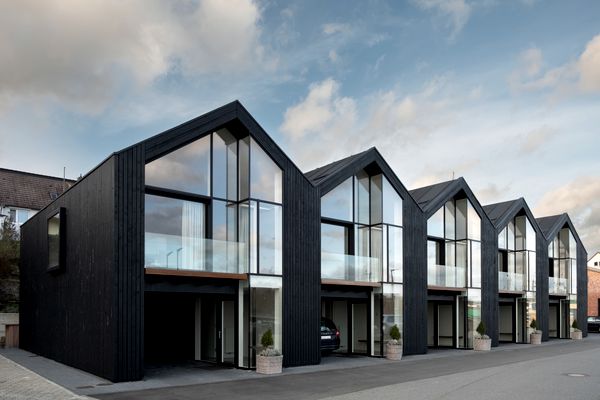 Am Fischereihafen in Kappeln reihen sich 5 neue Fischerhäuser entlang der Schlei. Inspiriert von den modernen skandinavischen Hafenbebauungen sind die Dächer bitumengedeckt und die Fassade aus geteertem Holz. Als Reaktion auf den Hochwasserschutz im Hafengebiet, wurden die Grundrisse der Gästehäuser in Splitleveln organisiert. Eine intelligent verzahnte Raumaufteilung macht es möglich, auf weniger als 100 qm folgende Funktionen unterzbringen: Carport und Entré auf der Hafenebene, rückseitig zur Hangebene ein Schlafzimmer mit Bad, auf der oberen Ebene ein großzügiger Wohn- und Küchenbereich der sich über eine große Glasfront mit Loggia zum Hafen hin öffnet und ganz oben eine weitere Schlafempore die durch eine Faltwand separierbar ist.